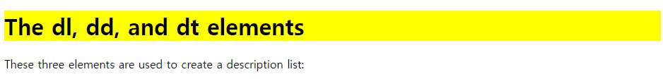 <p class = "a" style="text-align:center">A dl element is displayed like this:</p> <!--회색-->