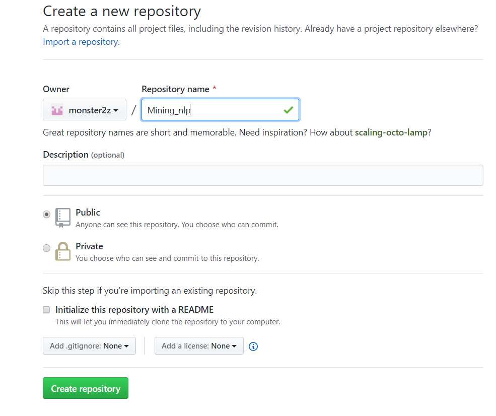 깃허브에 연결을 하기 위해서는 가입 및 연결할 레포지토를 신규 생성해야 한다.