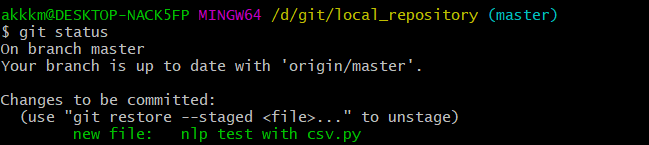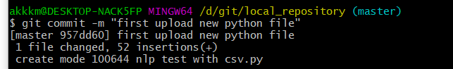 나는 처음으로 올리므로, $git commit -m "first upload new python file" 입력
